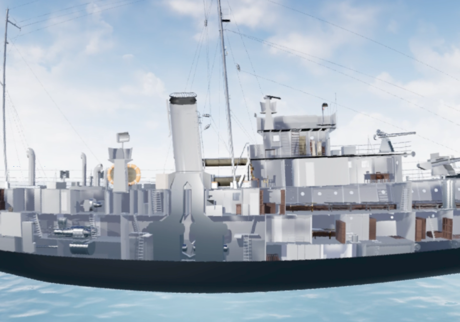 Our first major public experience launched in July 2025 aboard HMS Wellington, a historic naval ship moored in Central London. This 30-minute guided VR experience allows visitors to explore the ship as it would have looked and felt during wartime, blending real-time Unreal Engine environments with spatial audio, interactive moments, and character-driven storytelling.